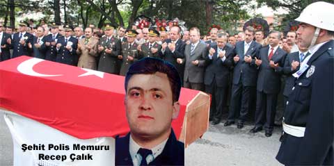06.05.2007 Pazar günü Diyarbakır Kulp İlçesi Adliye Lojmanlarında tuttuğu gece nöbeti sırasında saat 21:00 sularında bir gurup PKK terör örgütü’nün kahpe saldırısı sonucu yaralanan 7 yıllık Polis Memuru Recep Çalık yaklaşık 10 günlük hayat mücadelesini kaybederek şehit oldu.