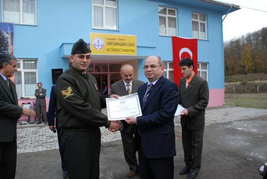 Törende Karabük Valimiz Sayın Can Direkci, Pansiyonun yapımında katkı sağlıyan Yenice esnaflarımızdan Hüsamettin Ören (Ören Ticaret), Yortan Belediye Başkanı Yimaz Tiryaki, İlçe Jandarma Komutanlığı ve Orman İşletme Şefine birer teşekkür plaketi verildi